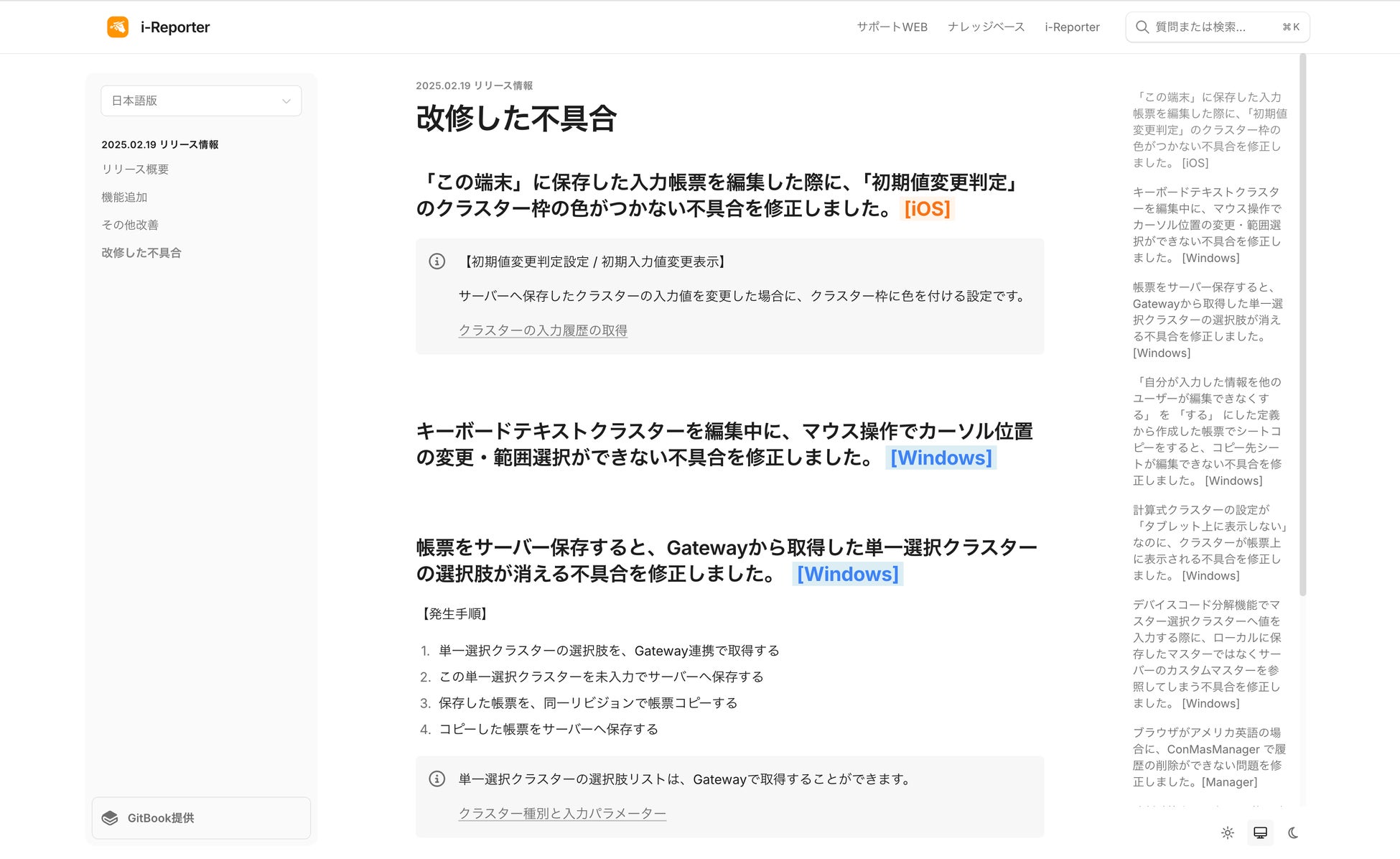株式会社シムトップス(本社:東京都品川区、代表取締役:水野貴司)は、現場帳票デジタル化システム「i-Reporter」のリリースノートをリニューアルいたしました。これによりi-Reporterの機能追加・改善内容がわかりやすくなりました。