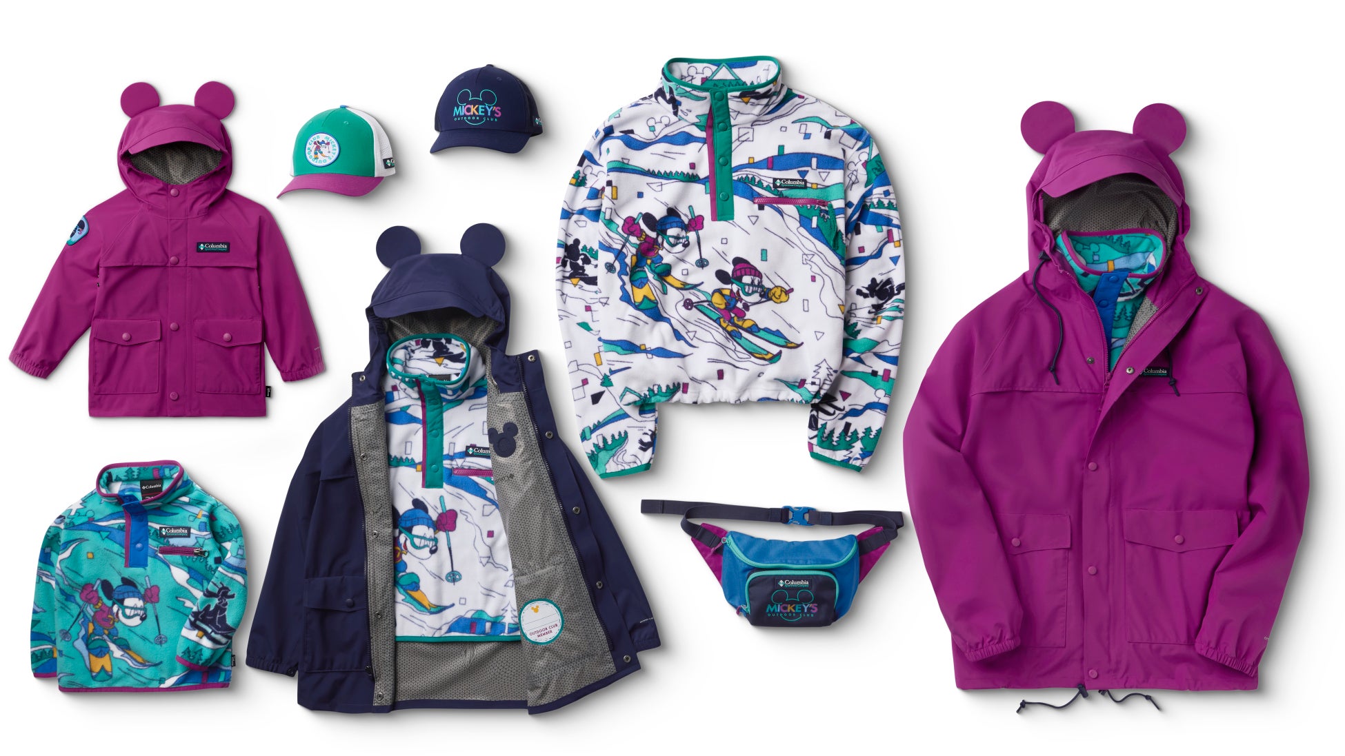 本コレクションはミッキー&フレンズが夢のスキー休暇を楽しむ様子が90年代風のタッチで描かれた、コロンビアらしい冬のアイテムが登場。コロンビアの象徴的な通気性と着心地の良いフリースや、コロンビア独自の防水透湿機能Omni-Techで仕上げたレインジャケットなどをラインナップ。収納可能な「ミッキーマウスの耳」や、ミッキー型のベンチレーションポートなど、ミッキーファンの心をくすぐるユニークなディテールも満載。