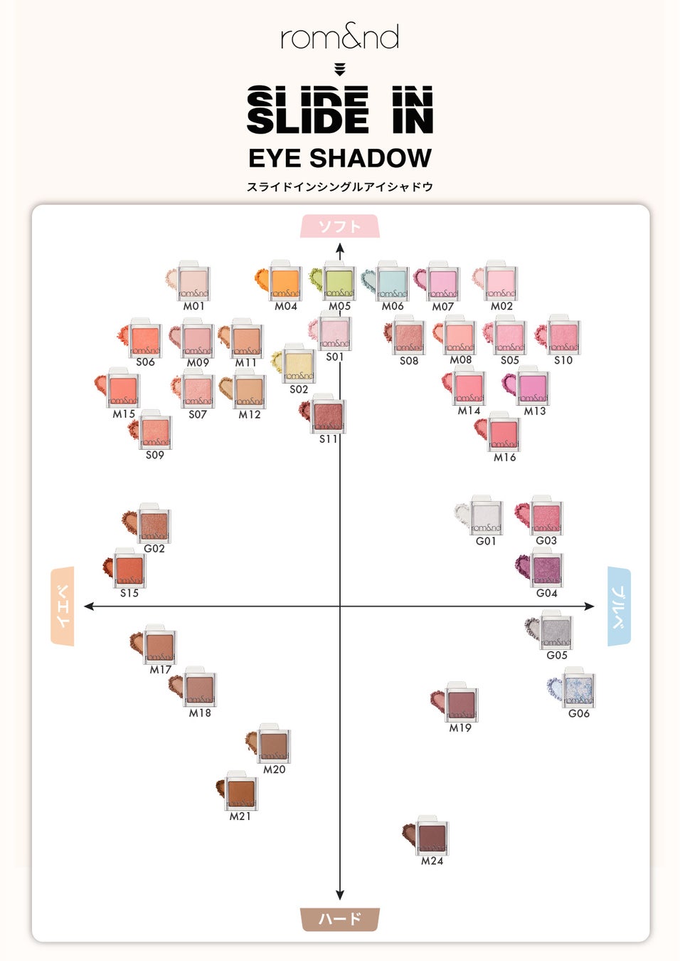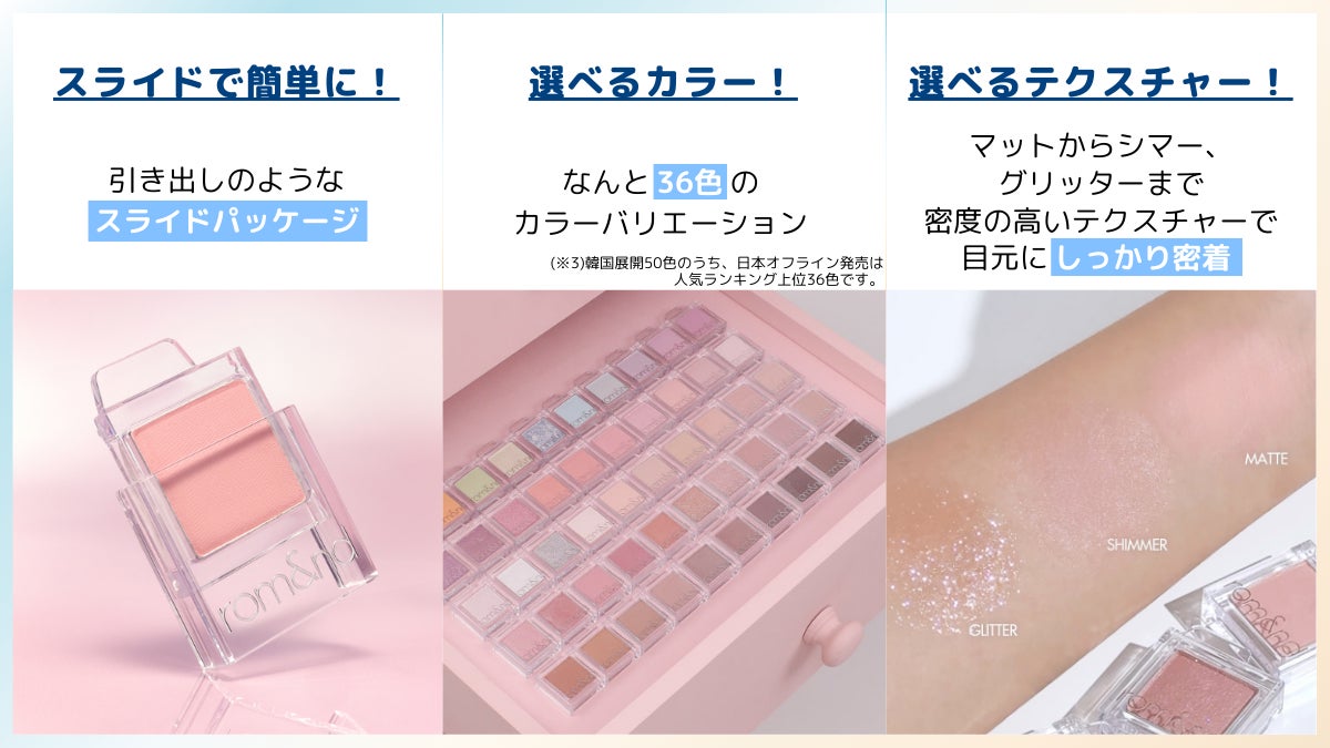 リップに続きアイまでカラー征服!ロムアンドだけの色で魅せる全36色「スライドインシングル」登場