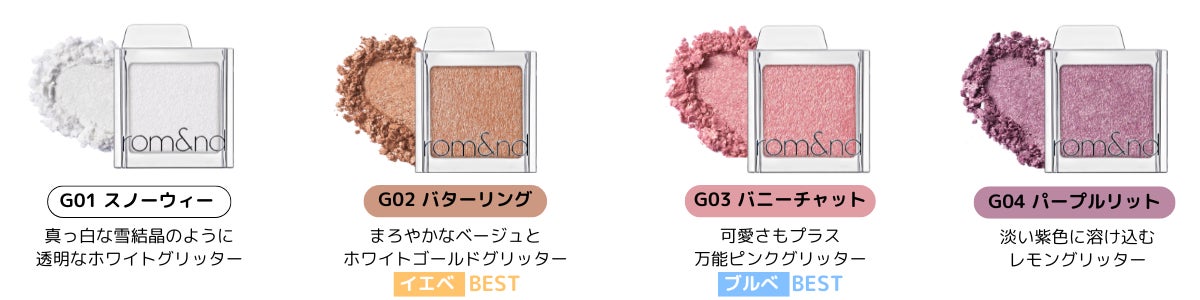 ロムアンド スライドインシングル〈グリッター〉/ 内容量 1.5g 価格 693円(税込)
