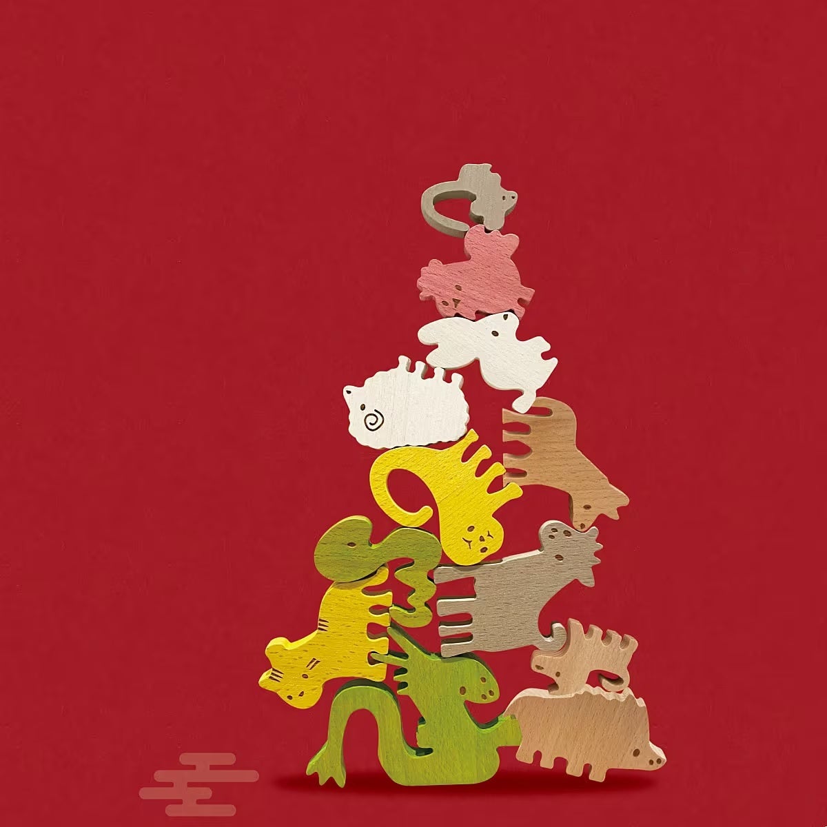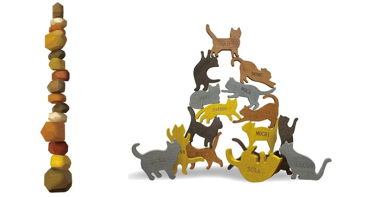 絶妙なバランスをとりながら積み上げるだけ。積み木が崩れた時のカランコロンという音にも癒され、インテリアとして、天然木で見た目も楽しい大人の積み木。お子さんからご年配の方まで、皆さんで楽しめます。
