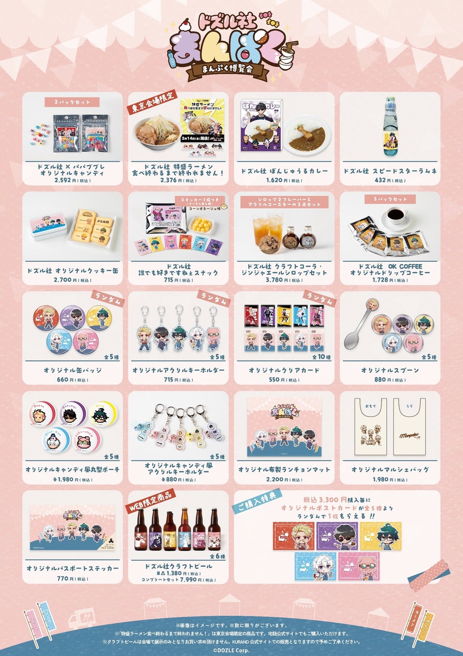 おいしくて楽しいポップアップストア『ドズル社まんぷく博覧会(略称:まんぱく)』では、ドズル社メンバーをコンセプトにした飲料・食品・グッズが大集合!