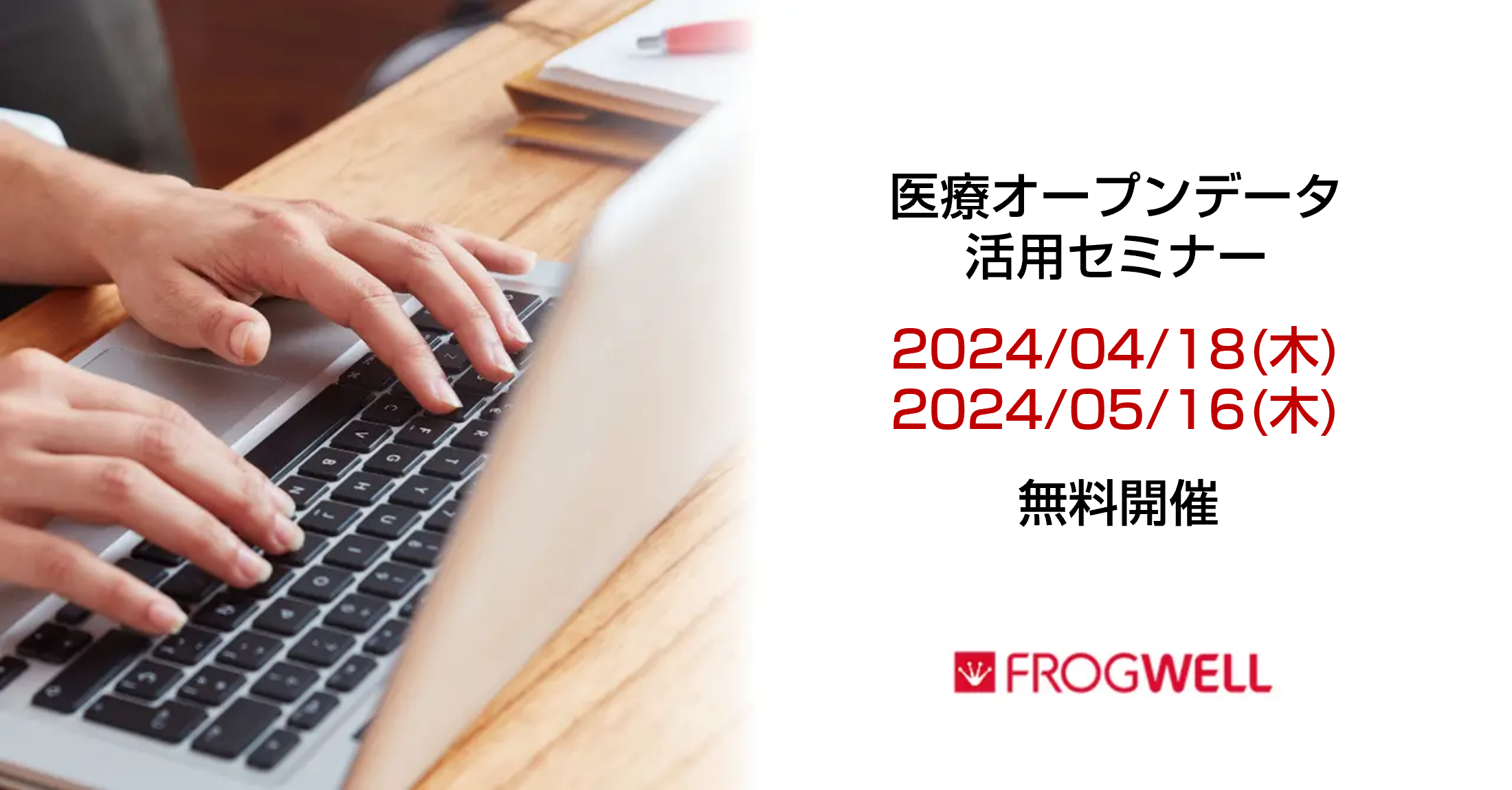 【無料オンライン】医療機関でのビックデータの活用・解析を実現したい方に向け、医療オープンデータ活用セミナーを4/18(木)、5/16(木)に開催【フロッグウェル株式会社】