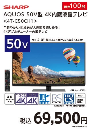商品名: SHARP AQUOS 50V型 4K内蔵液晶テレビ<4T-C50CH1>