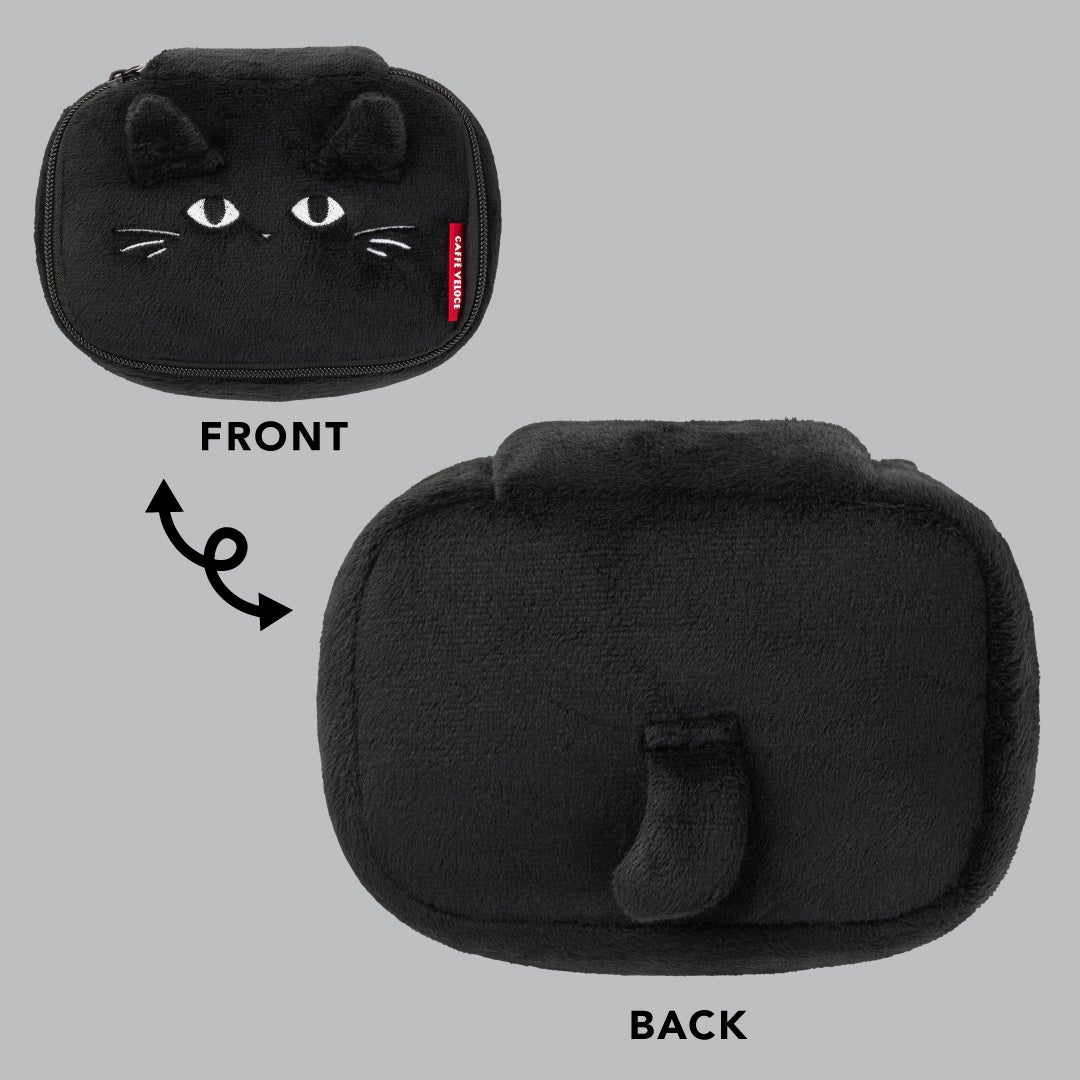・ふわふわの肌触りがたまらない!黒ねこの耳としっぽつきのマルチポーチ&ケース