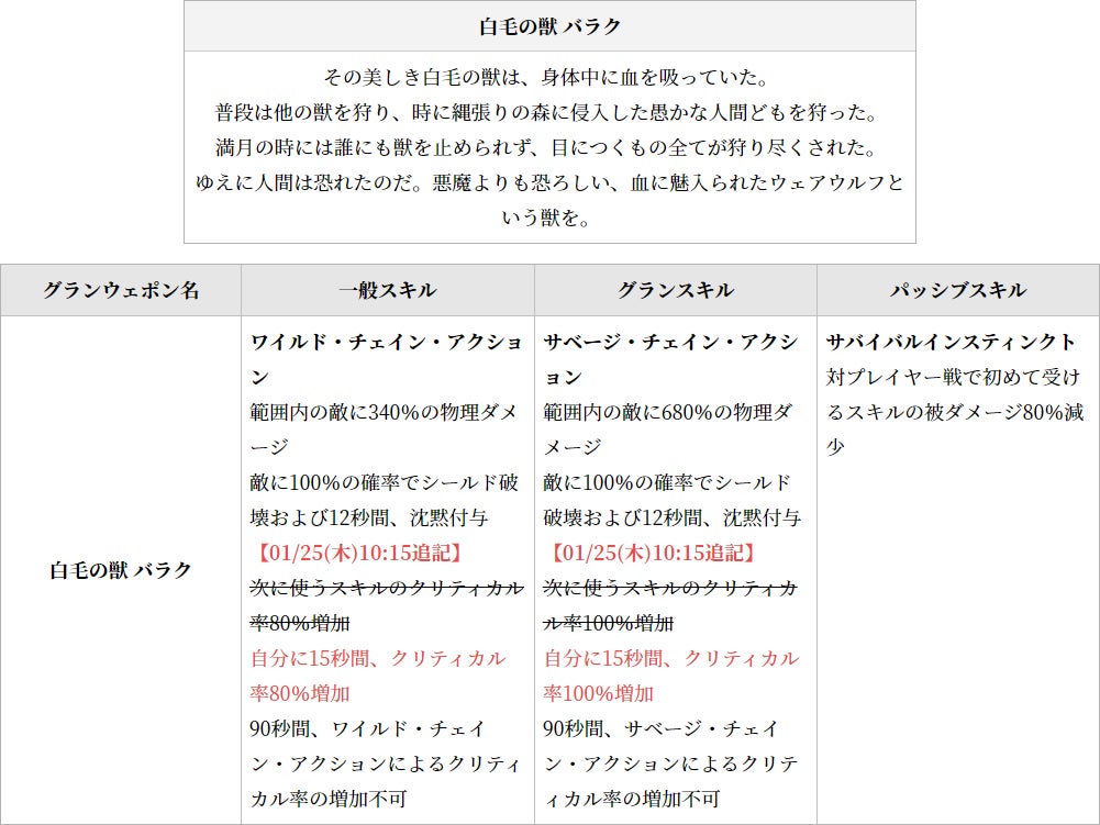 ※SGW「バラク」の一部スキル効果および説明について変更を行いました。