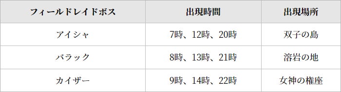 ・新たにフィールドレイドボス「アイシャ」「バラック」「カイザー」が追加されます。