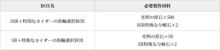 ・「SSR上級討伐指令書選択BOX」と「SR上級討伐指令書選択BOX」は、使用することで、各フィールドレイドボスに対応した上級討伐指令書を選択して獲得できます。