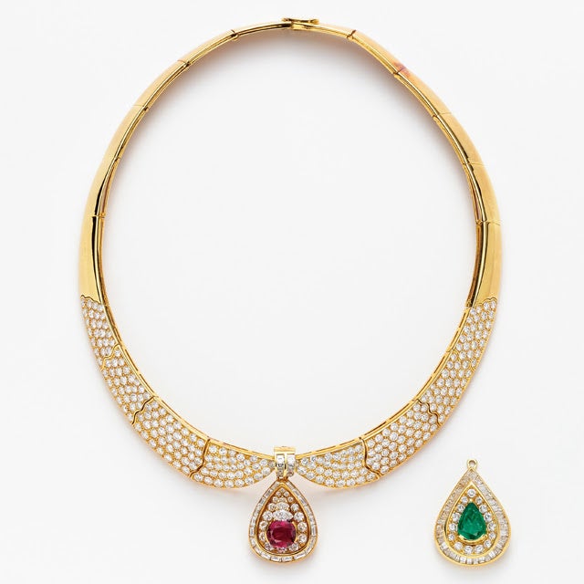 ルビー ダイヤモンドペンダントネックレス(エメラルドダイヤモンド替えペンダントトップ付)