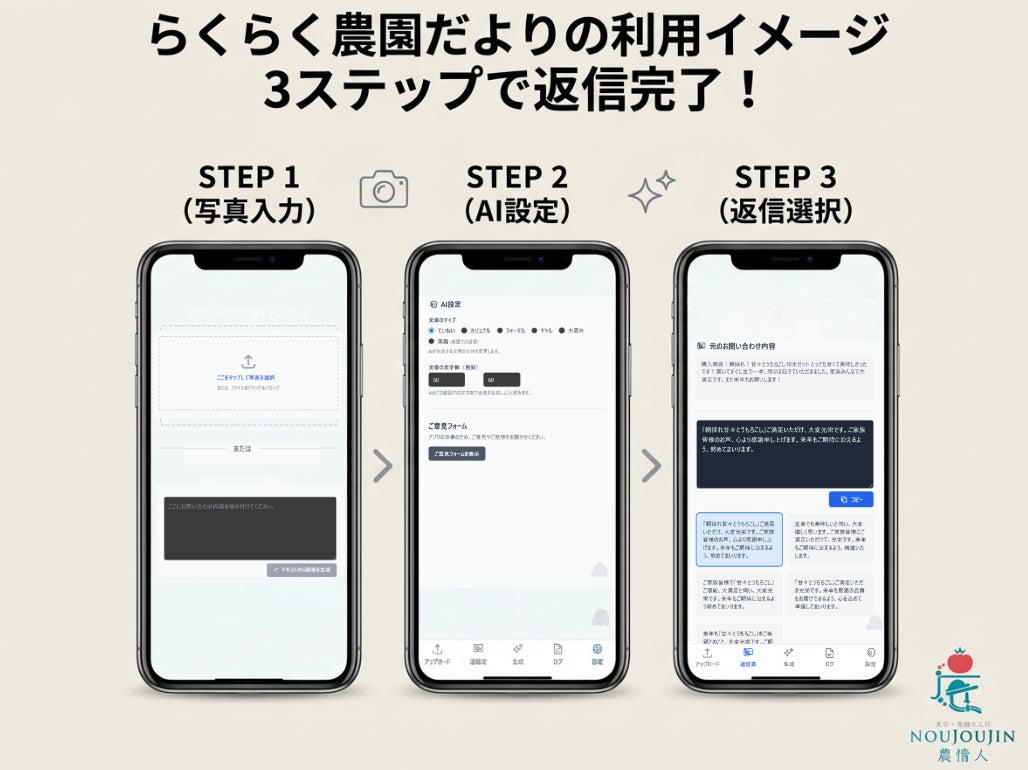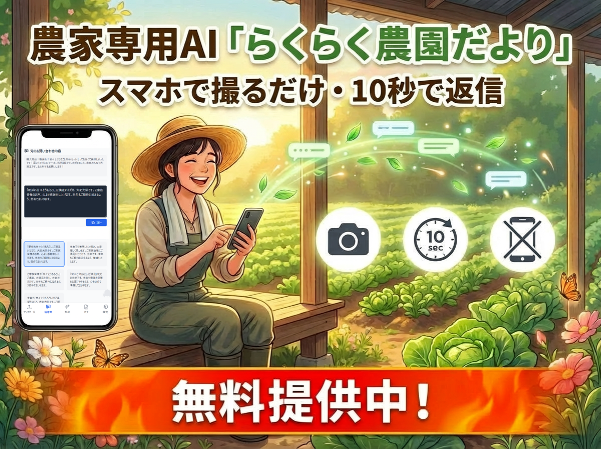 スマホのスクショ1枚で心のこもった返信が完成。農家専用AI「らくらく農園だより」、無料提供開始!