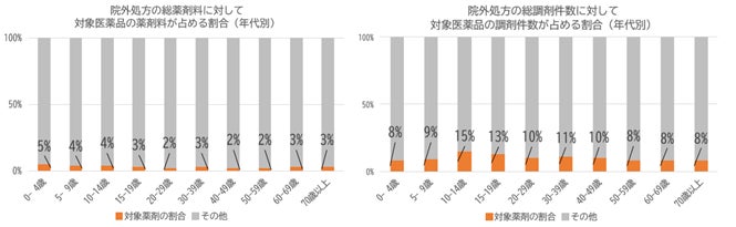 対象医薬品について、総薬剤料は全体の約3%、総調剤件数は約10%を占めていました。(図1)