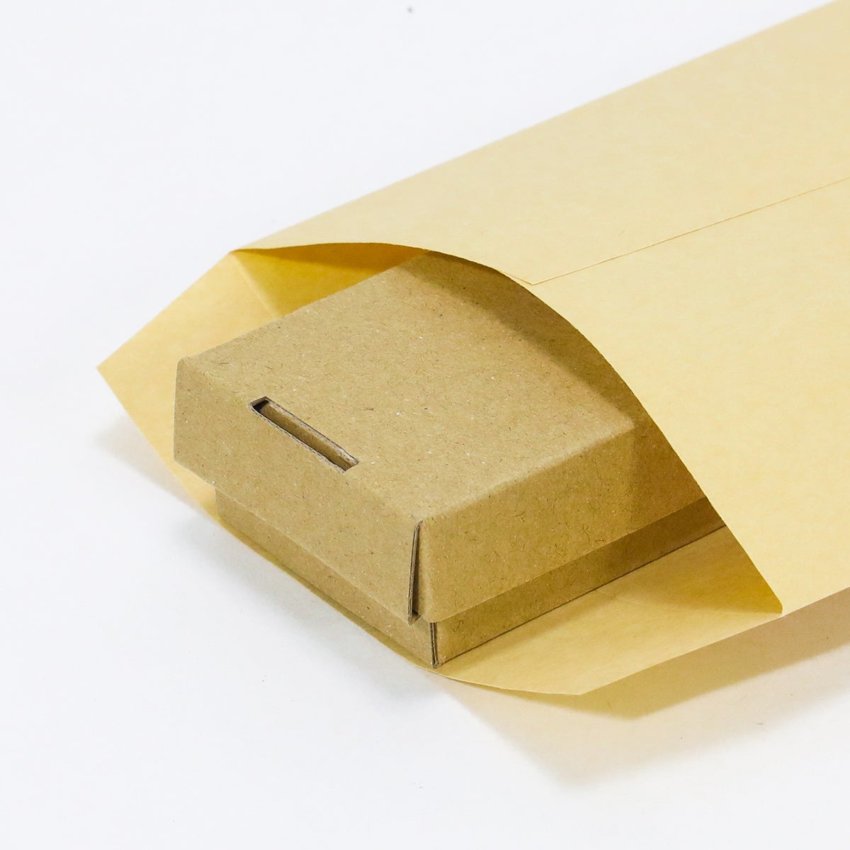 長3封筒などに入れることで発送用の箱としても使用可能。小物雑貨やクラフト製品をイベントで販売する際に便利な小型ダンボール箱