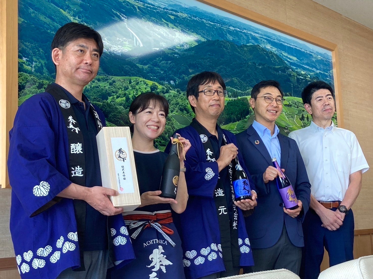 写真中央 :山中久典 遠州山中酒造代表取締役兼杜氏