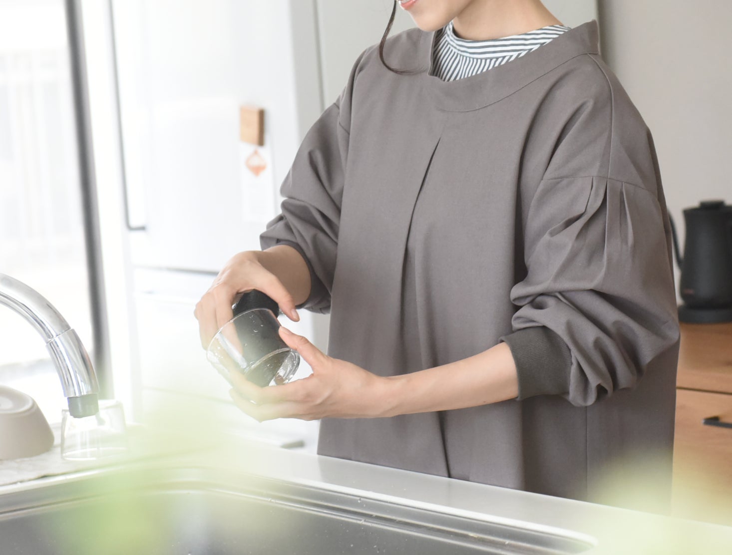 家着に着替えなくてもお洋服を裾濡れや油汚れから守ることができ、スムーズに調理に取り掛かれます。