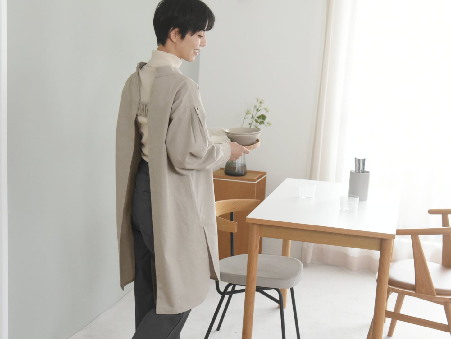 長袖の季節でも服を汚すことなく家事ができる「割烹着」。ボンモマンから登場したこちらはサッと脱ぎ着しやすい仕様と、今の暮らしに馴染むスタイリッシュなデザインにもこだわっています。