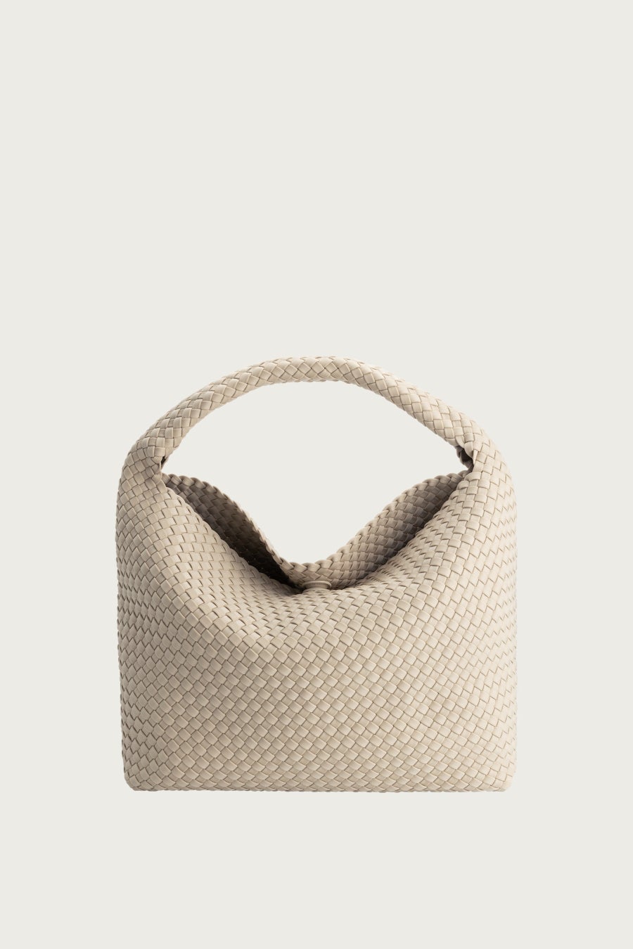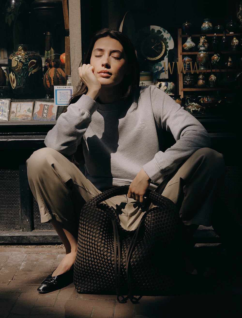 撥水性と耐久性に優れたネオプレン素材を手編みで仕上げた軽やかな印象のメッシュ素材は、季節を問わず使える通年素材。ニットやコートなど、重くなりがちな秋冬のスタイリングに抜け感を与え、毎日の装いに自然となじみます。