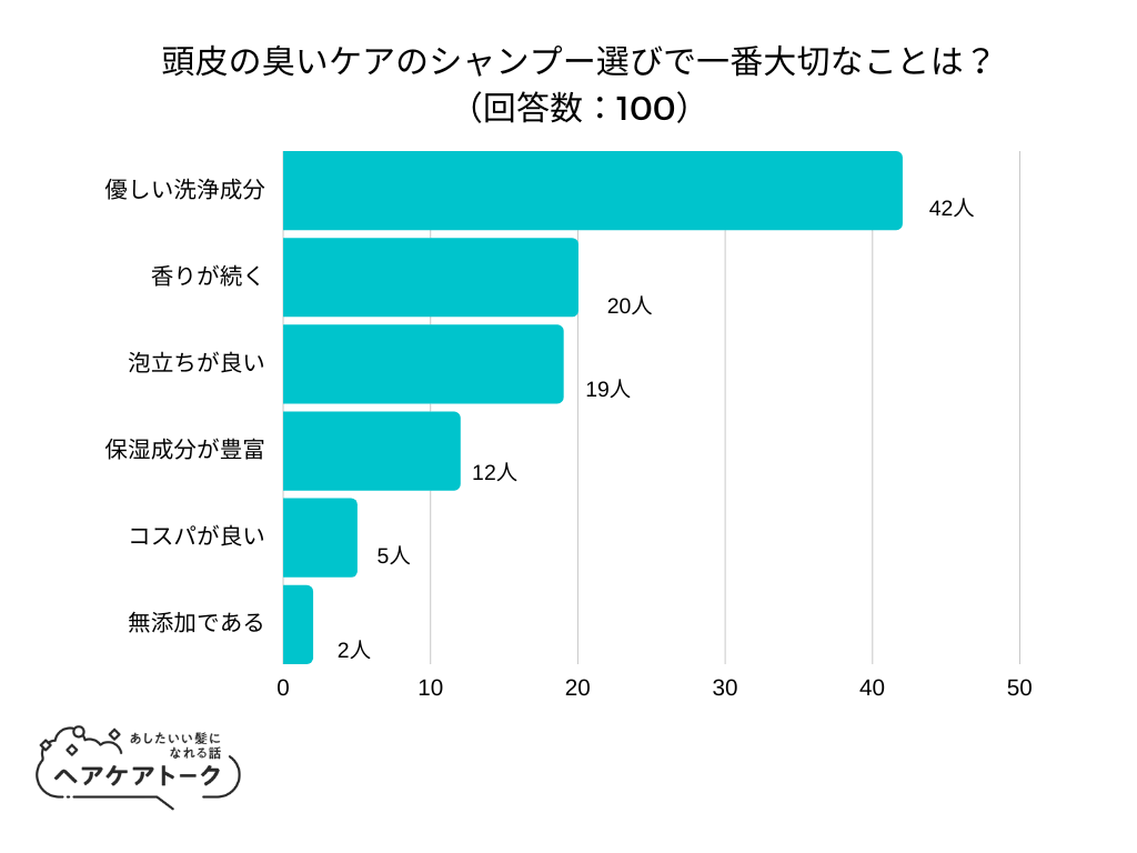 【調査レポート】頭皮の臭いケアのシャンプー選びで一番大切なことは?1位は「優しい洗浄成分」でした!