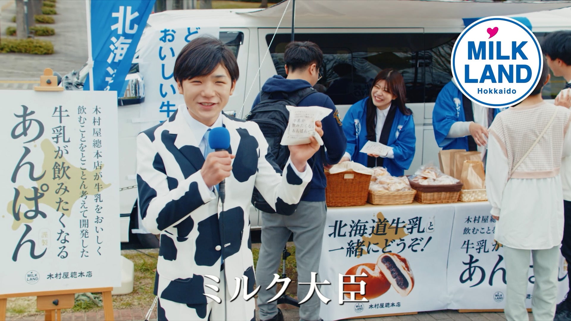 「牛乳が飲みたくなるあんぱん」CMでは、ミルクランド北海道アンバサダーである「ミルク大臣」と、今回初登場のキャラクター「ミルク刑事」の二役を寺田心さんが熱演。ミルク大臣が開発した「牛乳が飲みたくなるあんぱん」で北海道産牛乳が熱烈に欲しくなるミルク刑事の様子を表現しました。