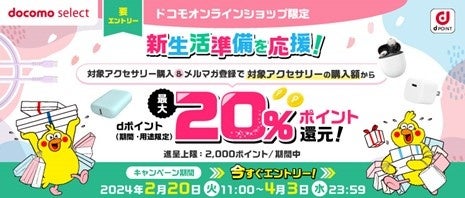 ドコモオンラインショップ限定「スマホアクセサリー購入で最大20%ポイント還元キャンペーン」を開催