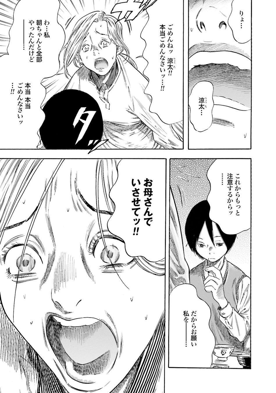 中学生の三木涼太は、母ひとり子ひとりだが、その仲はむつまじくとても幸せに暮らしていた。だが、家族間の些細なトラブルやミスで怯えるのは母という、親の身分が低いかのような不思議な関係だった。一方、クラスメイトの笠井薫は過保護な親に辟易し、イジメを受ける自分の性格は母親が悪いと考えていた。そんなある日、いつもの薫へのイジメを助けたことがきっかけで、ふたりははじめて会話をし……。