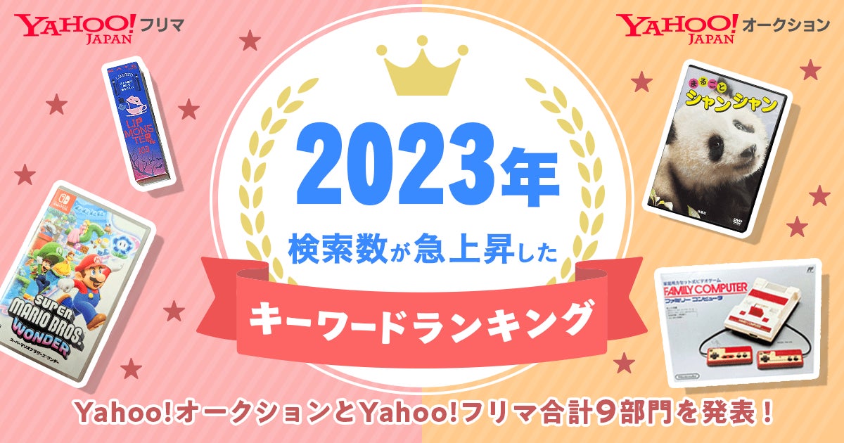 LINEヤフー株式会社が運営する日本最大級のオークションサービス「Yahoo!オークション」とフリマアプリ「Yahoo!フリマ」は本日、2023年に前年同期間と比較して検索数が急上昇したキーワードランキングを発表しました。