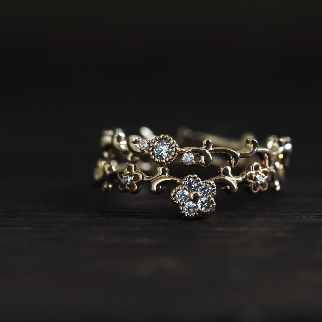 これまで先行オーダー会として全国の店舗で展開してきた「Nature(ナチュール)」シリーズのリングコレクションが、好評を受けて、7月よりパーセル ジュエリー新宿店での常設展開となります。繊細な植物の造形をモチーフにした全21型のリングは、新たに2型を加えて再構成。華奢ながら存在感のある仕上がりで、重ね着けのアレンジも楽しめる自由度の高いシリーズです。丁寧に磨き込まれた細部のつくりには、ジュエリーとしての完成度の高さが宿ります。見た目の印象と、実際に着けたときの印象が異なるものも多く、店頭での試着を通じて、自分らしい組み合わせを探す時間も魅力のひとつです。