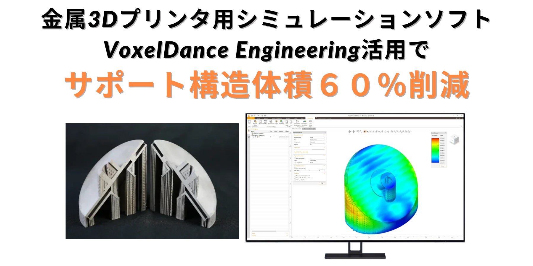 株式会社システムクリエイト(本社:大阪府東大阪市荒本新町、代表:川上正義)はVoxelDance社の金属3Dプリンタ用シミュレーションソフトウェアであるVoxelDance Engineering (VDE)を活用し、最大60%のサポート構造の体積削減を達成した事例をご紹介いたします。このソフトウェアは、材料の選択、印刷速度、層の厚さ、固有の歪み、温度など、さまざまな印刷パラメータを考慮して最終部品のパフォーマンスを保証します。最小限の材料で成功可能なサポート構造を事前に確認できるため、材料の使用を最小限に抑え、最終的には開発および製造コストの削減が可能となります。