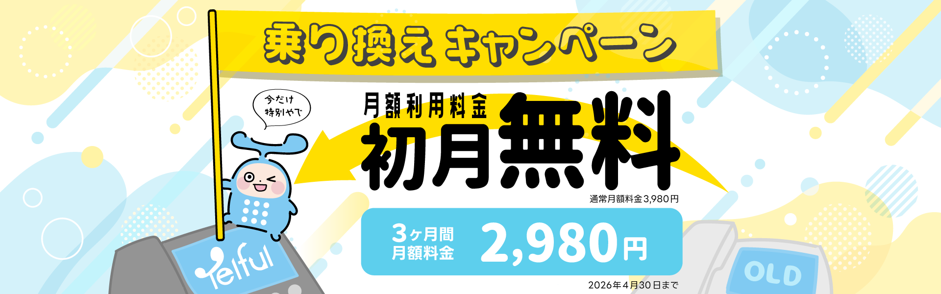 現在Telfulは、他社の電話サービスをご利用中のお客様を対象に、初月の月額利用料金が無料、さらにその後3ヶ月間は2,980円となる乗り換えキャンペーンを実施中です。