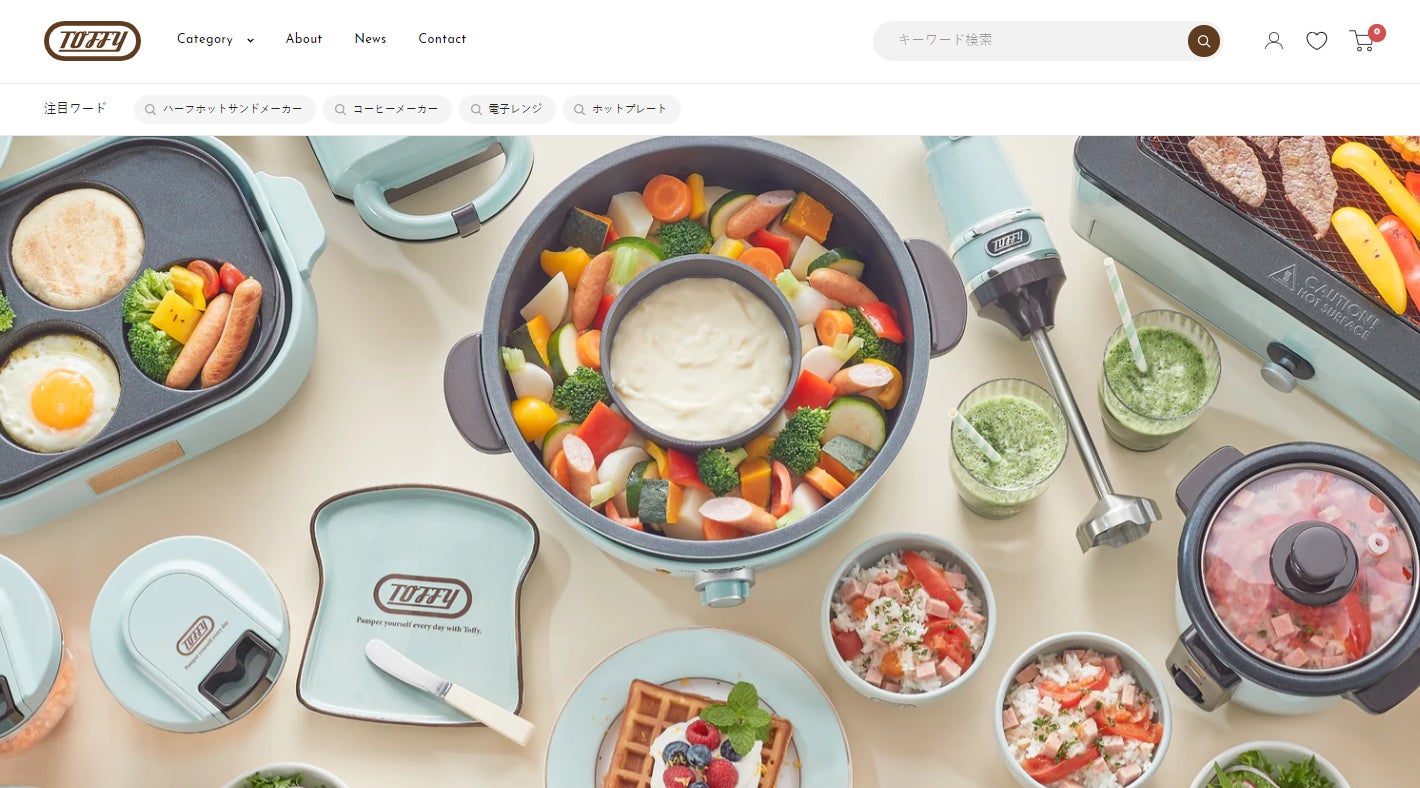 公式オンラインショップでは、Toffyの世界観の中でお買い物ができるようになっており、詳しい使い方やレシピのご紹介など、商品の魅力をより感じることができるオンラインショップになっています。新商品をいち早くお買い求めいただけるだけでなく、会員ポイント制度をご利用いただくとお得にお買い物をお楽しみいただけます。