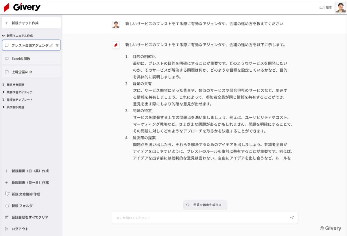 管理者がユーザーのためにプロンプトを設計でき、ユーザーは生成されたプロンプトを自らの業務に組み込むことができます。