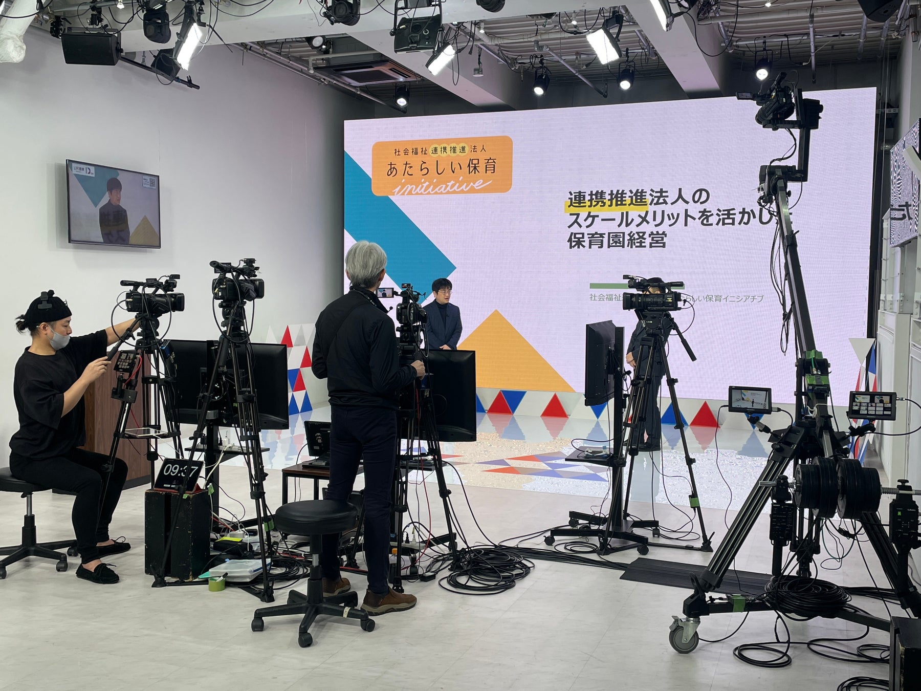「Croak Prime Studio」では、イベント、ライブ放送、ストリーミング放送、社内会議、セミナー、企業PR、商品説明、記者会見などの様々なコンテンツ配信が可能な映像制作システム「TriCaster(トライキャスター)」を多数擁し、番組制作そして、ライブストリーミング 映像配信しております。進化し続けるお客様や時代のニーズに応えるため、業界内でもトップクラスの設備、機材を完備。300インチのLEDスクリーン、複数個所をスタジオとして使用できる柔軟さ、フレキシブルスペースの新設により、大規模イベント中継やプレス発表会等にも幅広く対応。e-Sportsの分野でも、国内最高峰案件に携わっている実績を保持しております。