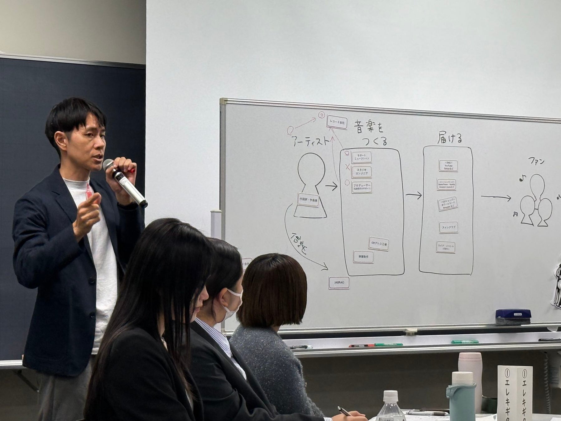 アーティスト、作詞家、作曲家、レーベル、音楽出版社といった権利者の関係性や、YouTubeやTikTokなどのプラットフォームでどのように収益が生まれるのかなど、普段あまり考えることのない音楽業界の仕組みを図式にし、理解できる内容となりました。
