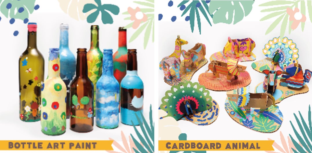 ①ボトルアートペイント/②ダンボールアニマルクラフト