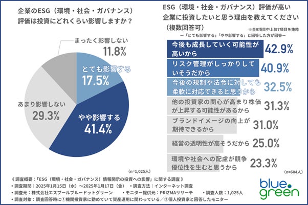 そこで今回、株式会社エスプールブルードットグリーンは、①機関投資家に勤めていて資産運用に関わっている方/②個人投資家を対象に、「ESG(環境・社会・ガバナンス)情報開示の投資への影響」に関する調査を行いました。