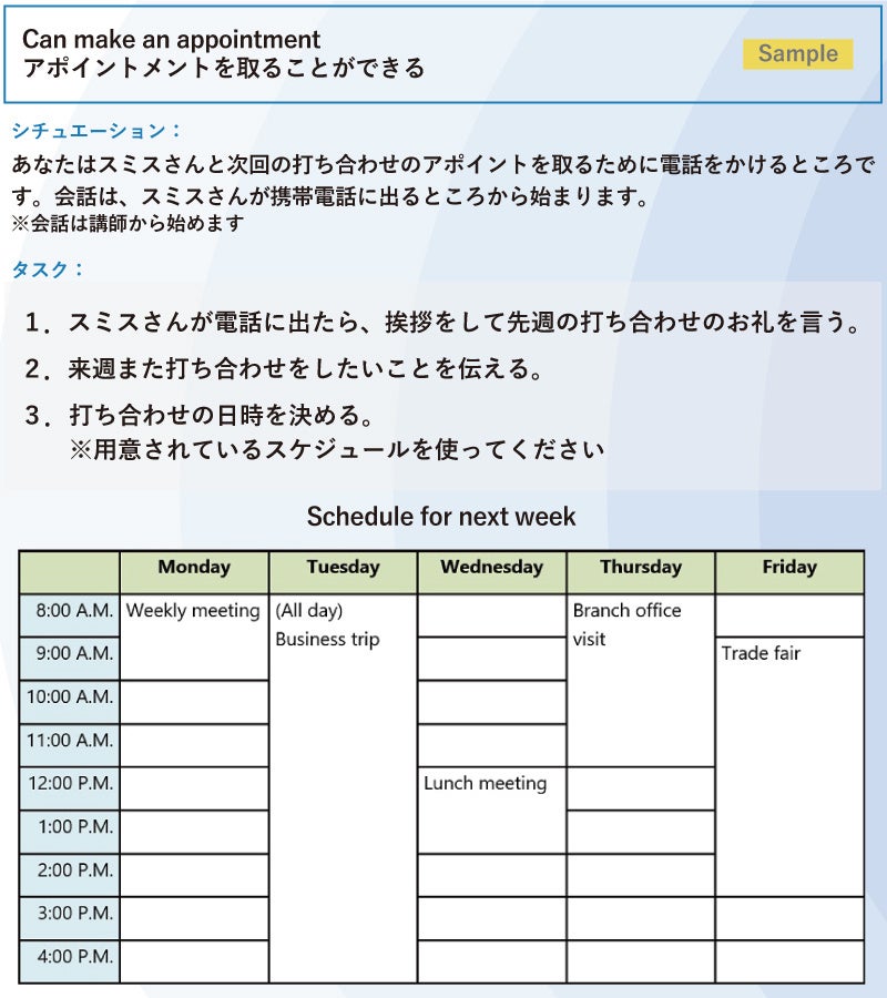 CAN-DOチャレンジでは、実際のビジネスシーンに基づいて様々なシチュエーションの問題が出題されるため、英語力をしっかりと積み上げることができます。