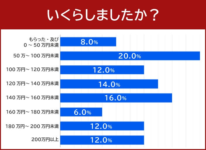 購入価格について質問すると、20.0%の方が「50万円から100万円未満」と回答しました。
