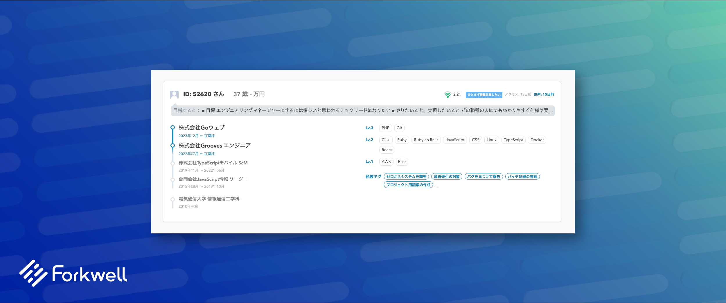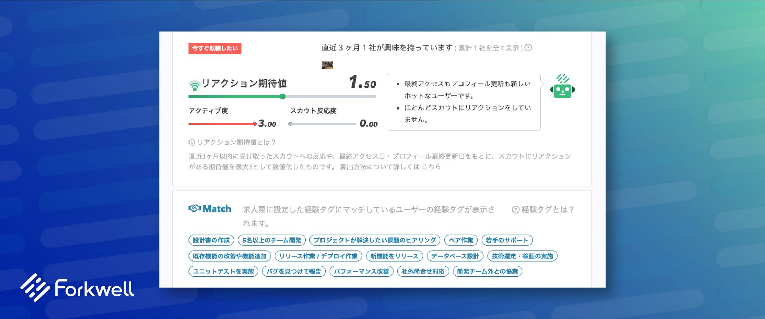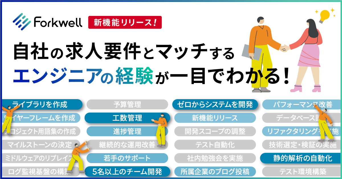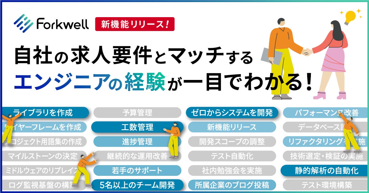 即戦力ITエンジニアのスカウトサービス「Forkwell(フォークウェル)」より、自社の求人要件とマッチする"エンジニアの経験"が一目でわかる新機能をリリース!