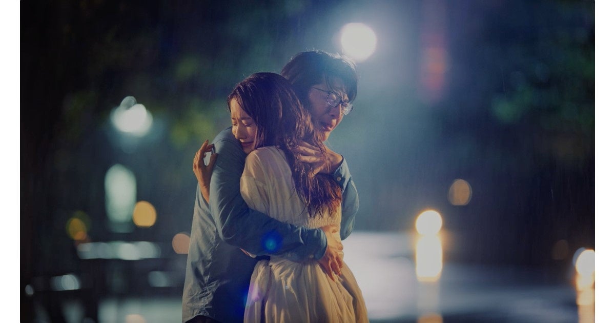 雨の中、熱い抱擁を交わす恋人役を及川光博さんと谷まりあさんが熱演!