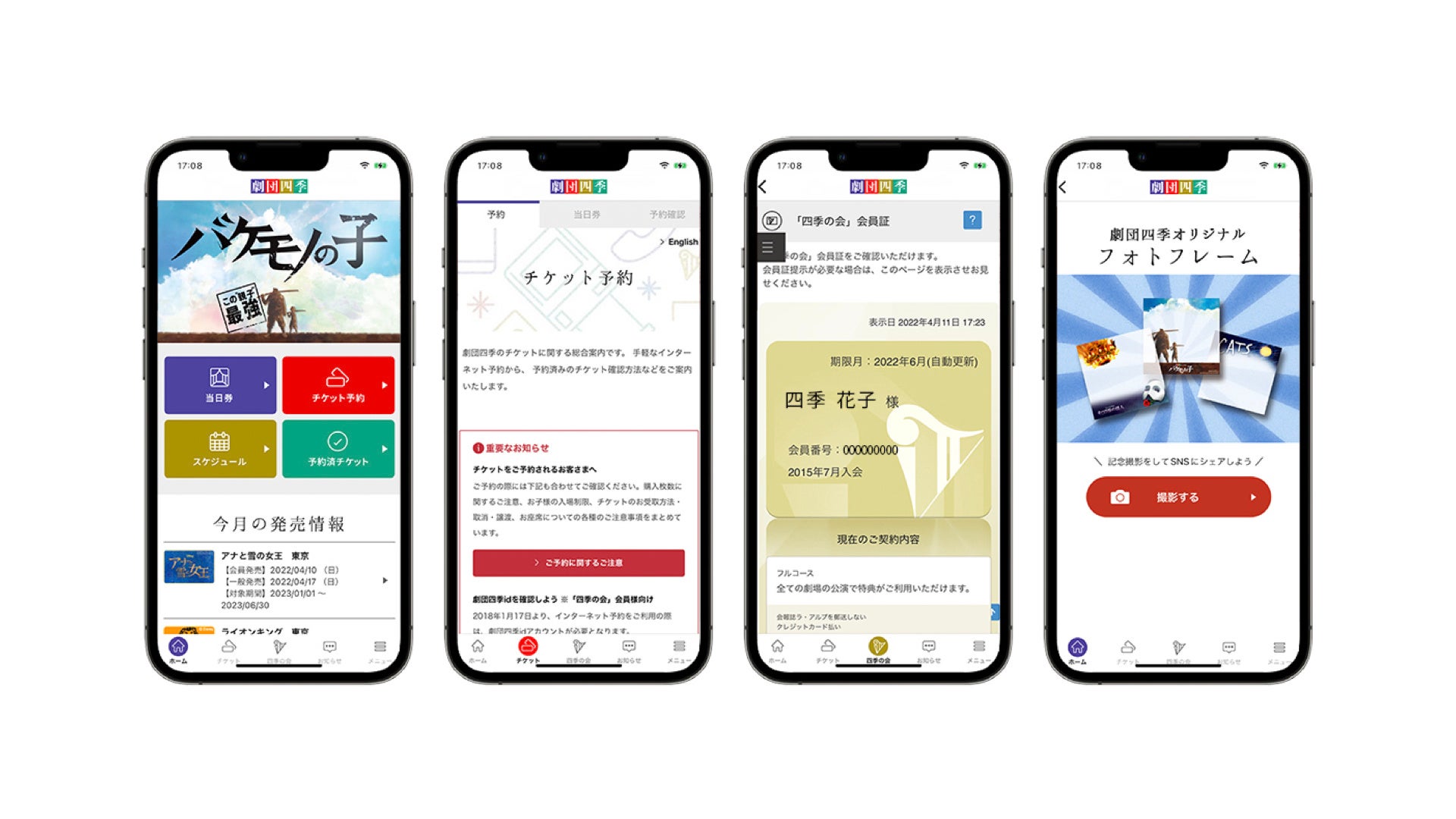 また、上記以外にも、劇団四季のさまざまな情報をまとめてチェックすることができます。「四季の会」会報誌「ラ・アルプ」ウェブ版をダウンロードせずにすぐに閲覧できたり、電子会員証をオフィシャルウェブサイトにアクセスすることなくアプリ上で簡単に表示できたりするため、会員の方の利便性が高まります。