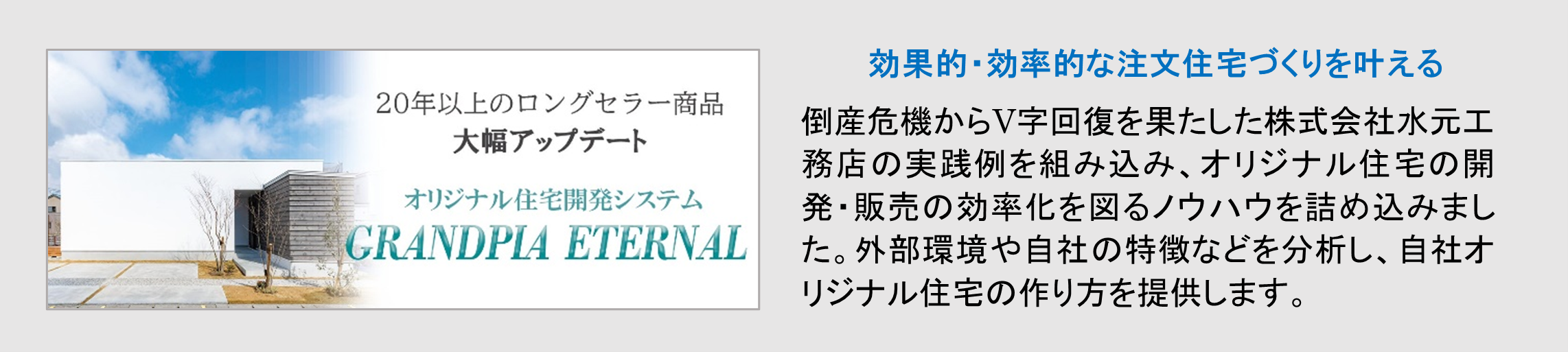 エンドユーザーへの提案方法を含むビジネススキームです。本商品で新たに業務提携する株式会社ONE STONES代表取締役である、建築プロデューサー 吉安孝幸氏監修の「スーパーローコスト住宅」から、「リフォーム」「リノベーション」「注文住宅」まで、新たな住宅の在り方を提案します。