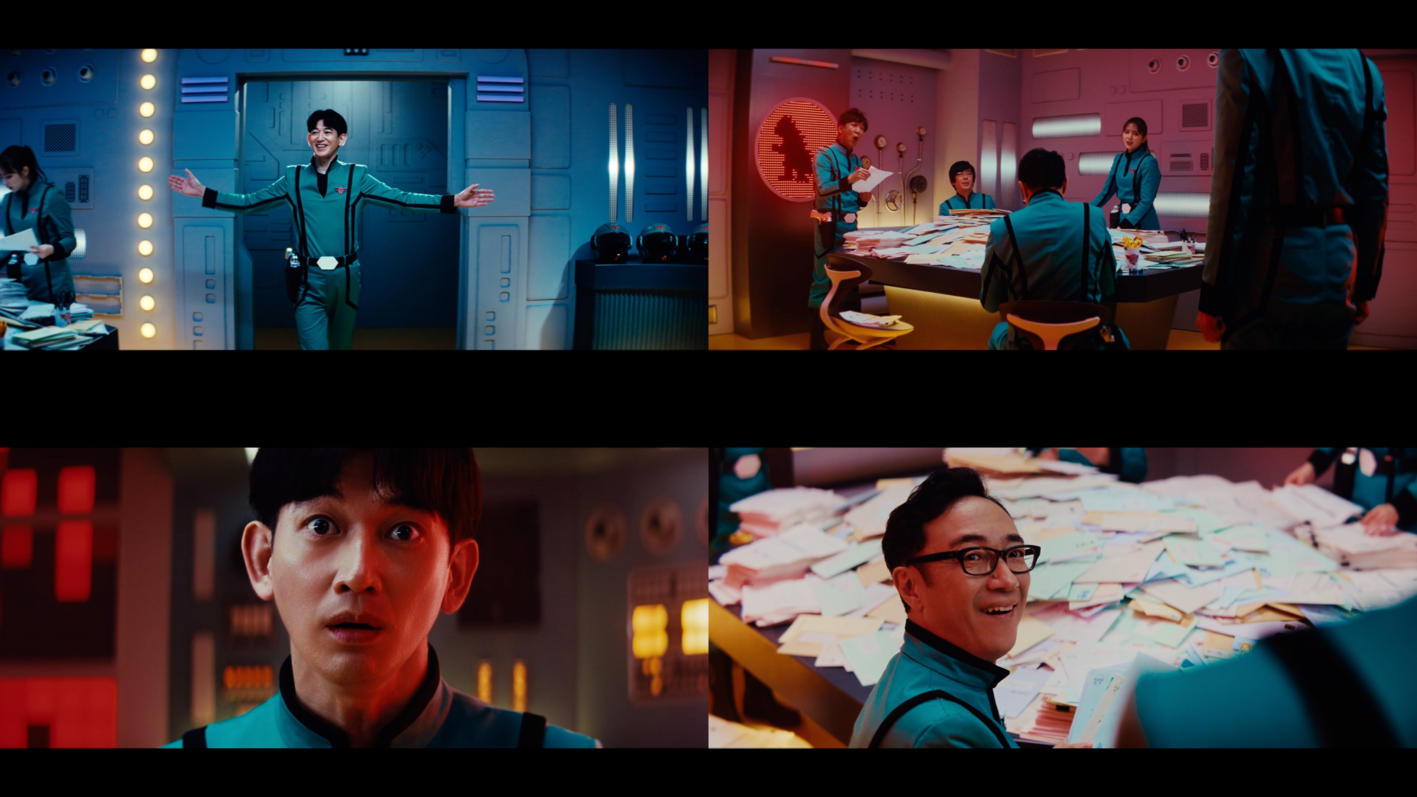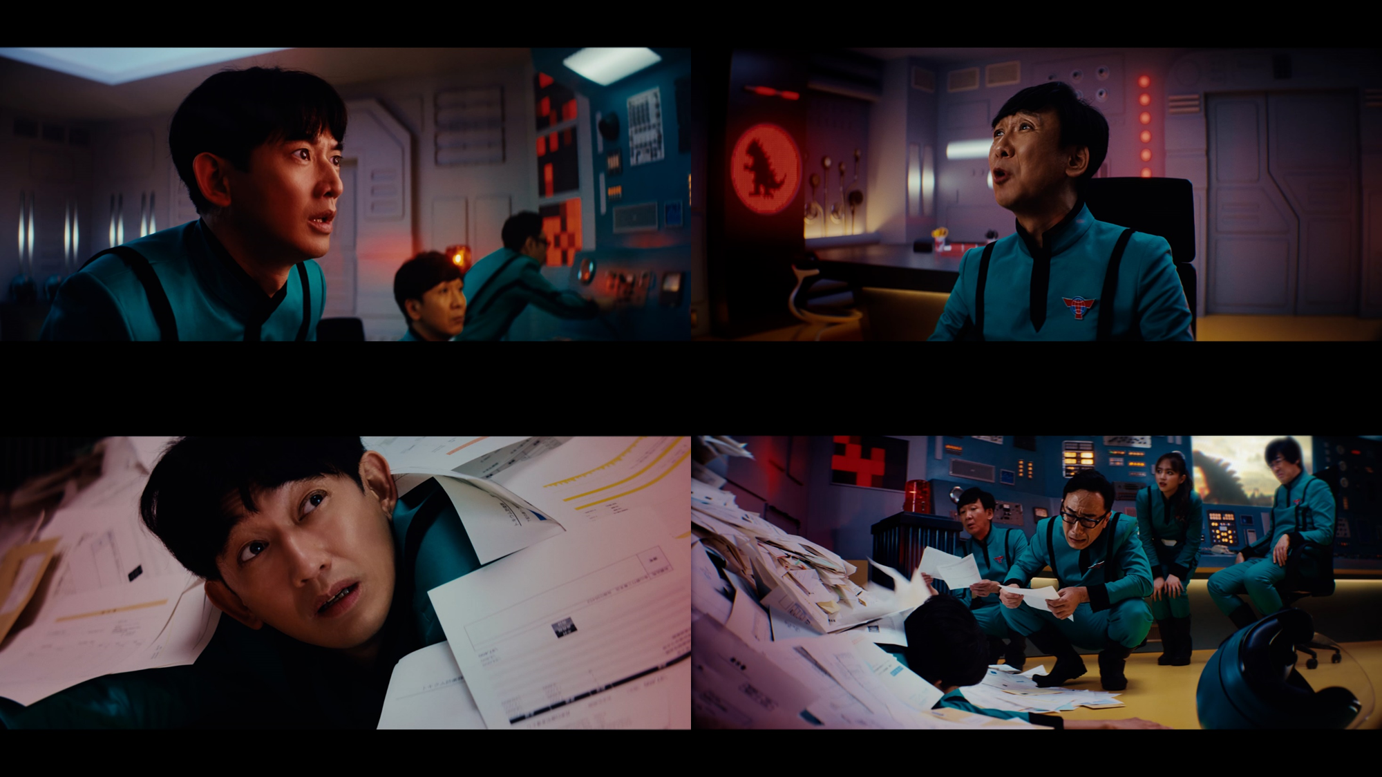 突如鳴り響く怪獣出現の警告とサイレン。「全員出動だ!」と瑛太隊員が、張り切って走り出す。 しかし、司令室を出ようと扉を開けるとそこには請求書の山が…