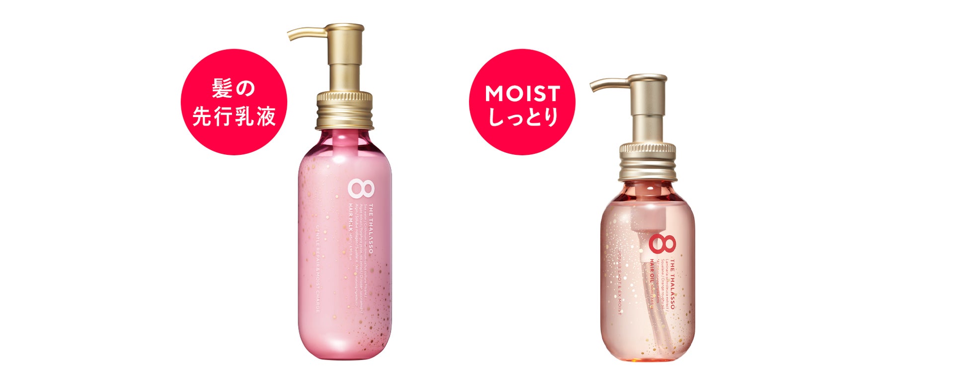 (右)毛先までしっとりまとまる「モイスト ヘアオイル」