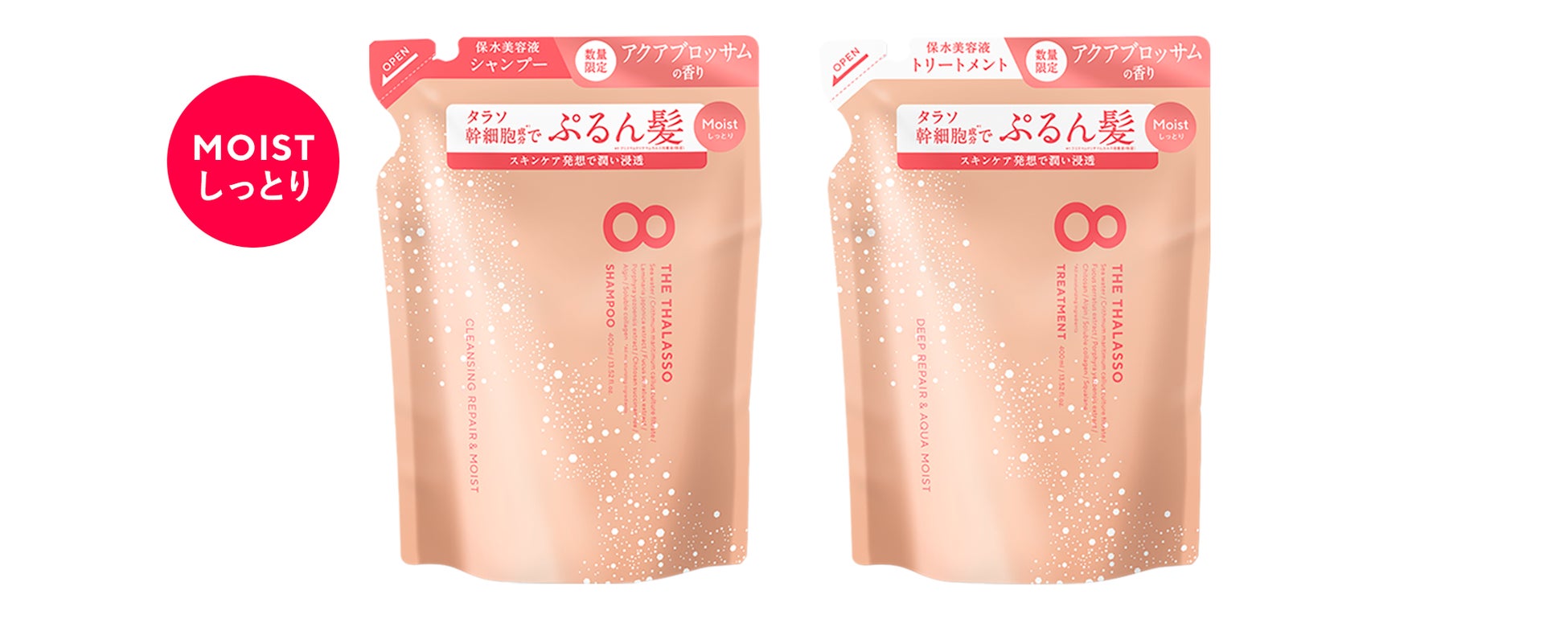 アウトバスアイテムも2種類をラインアップ。「エイトザタラソ」の仕上がりはそのままに、甘く爽やかなアクアブロッサムの香りと限定のデザインで、春の気分を盛り上げます。