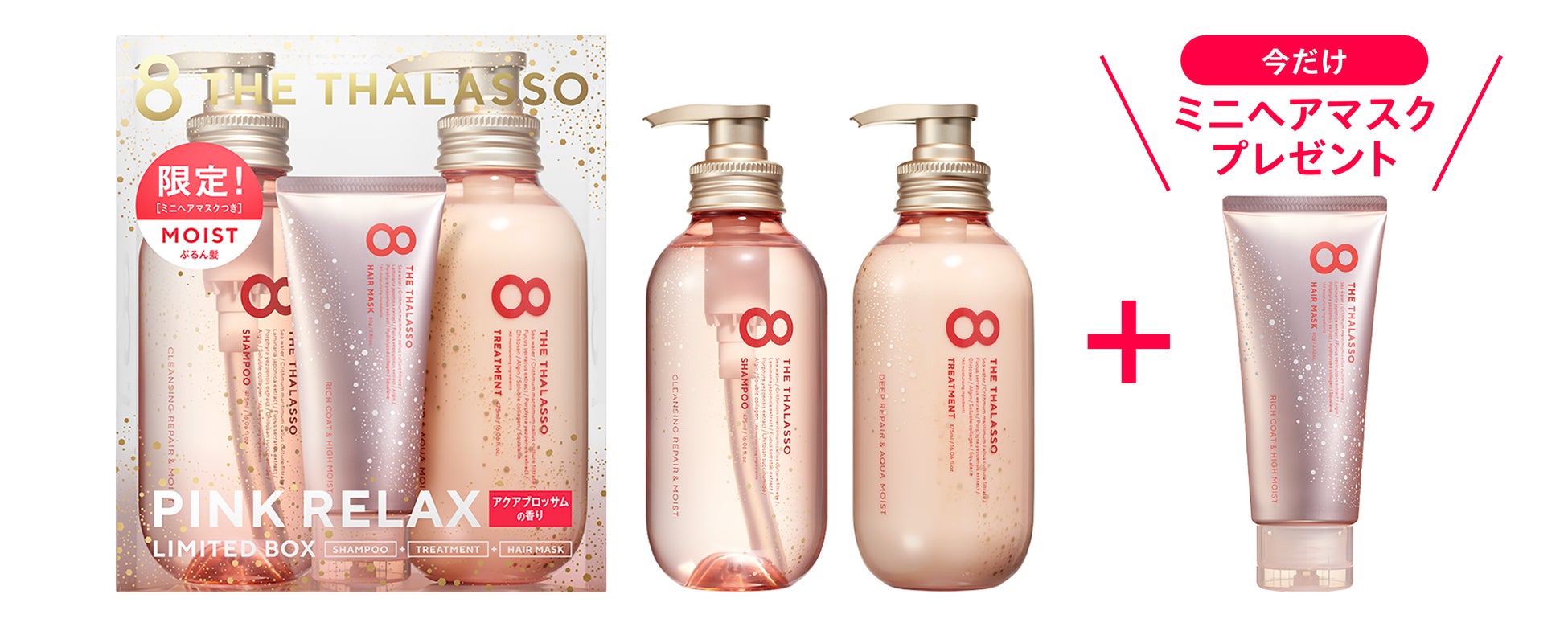 エイトザタラソ モイストシャンプー&モイストトリートメント ミニヘアマスク付き ピンクリラックス 限定キット(アクアブロッサムの香り)