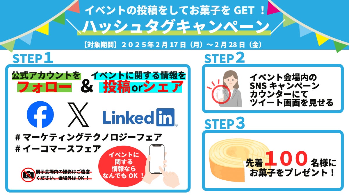 SNS(Facebook、X、LinkedInのいずれか)キャンペーン参加者100名様にお菓子をプレゼント!