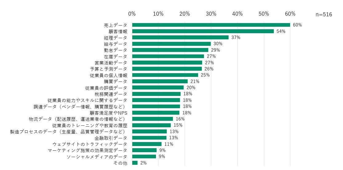 売上データと顧客情報に続き、経理や給与などバックオフィス業務のデータのほか個人情報も活用されていることがわかる。