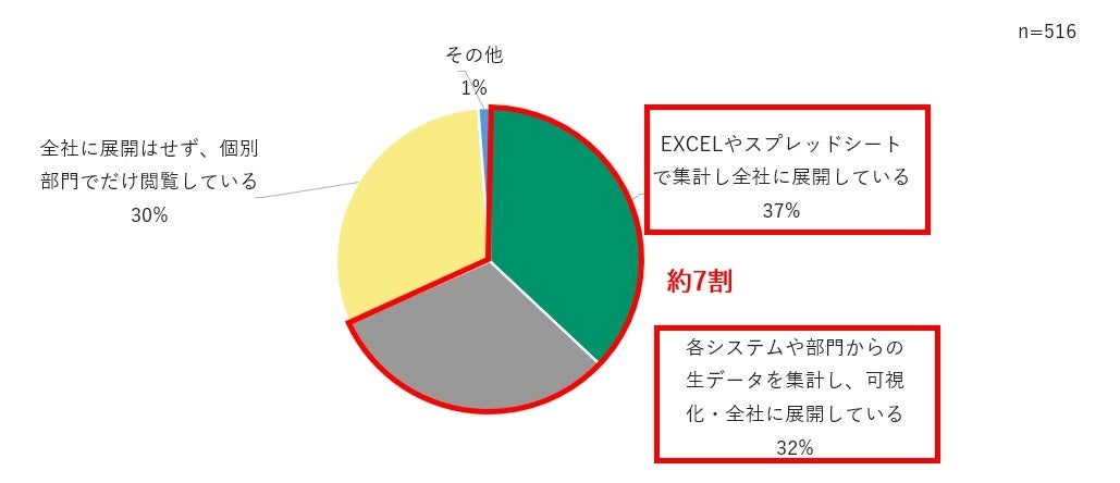Q5では分析や集計を担うのは各部門という回答が多数だったが、集計や分析結果については7割が全社で共有していることがわかる。