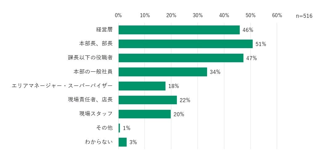 経営層や管理職をはじめとした意思決定層の本部社員を中心に閲覧・利用されている。現場責任者やスタッフへの共有が少ないのは、必要性の観点以外に、適切な開示・回覧手段がない可能性も考えられる。
