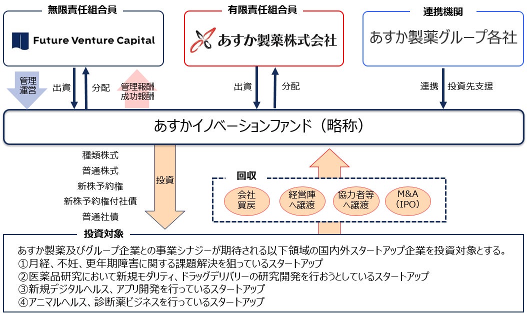 フューチャーベンチャーキャピタル株式会社(本社:京都市中京区、代表取締役:金武偉、以下「FVC」)は、あすか製薬株式会社(本社:東京都港区、代表取締役社長:山口 惣大)と共同で、あすかイノベーション投資事業有限責任組合「あすかイノベーションファンド(略称)」を設立しましたことをお知らせいたします。