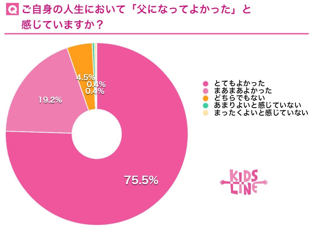 結果、75.5%が「とてもよかったと感じている」、19.2%が「まあまあよかったと感じている」と回答し、合計94.7%が「父になってよかった」と感じていました。